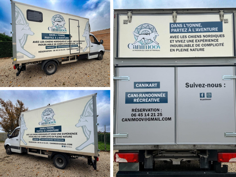 Notre agence a accompagné l’association icaunaise CANIMOOV, spécialisée en cani-randonnée et cani kart sur l’ensemble de ses opérations de communications visuelles . Au programme : marquage adhésif automobile et impression textile sur polos et polaires.