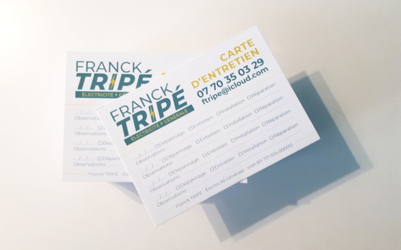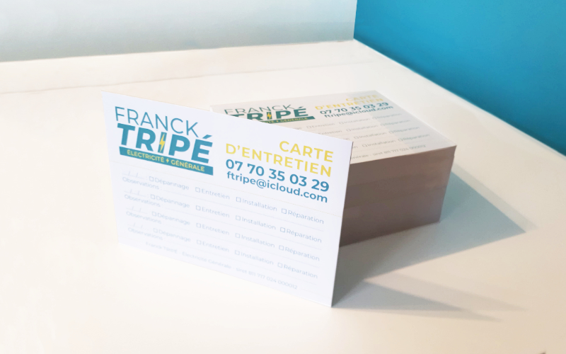 Les cartes ont été conçues afin de pouvoir à la fois être utilisées comme outil de communication de type pense bête, aide-mémoire et support de suivi afin d’assurer une relation de confiance avec le client. – Mise en avant des coordonnées de l’entreprise en partie haute. – Espace dédié aux observations techniques sur la partie inférieure de la carte.